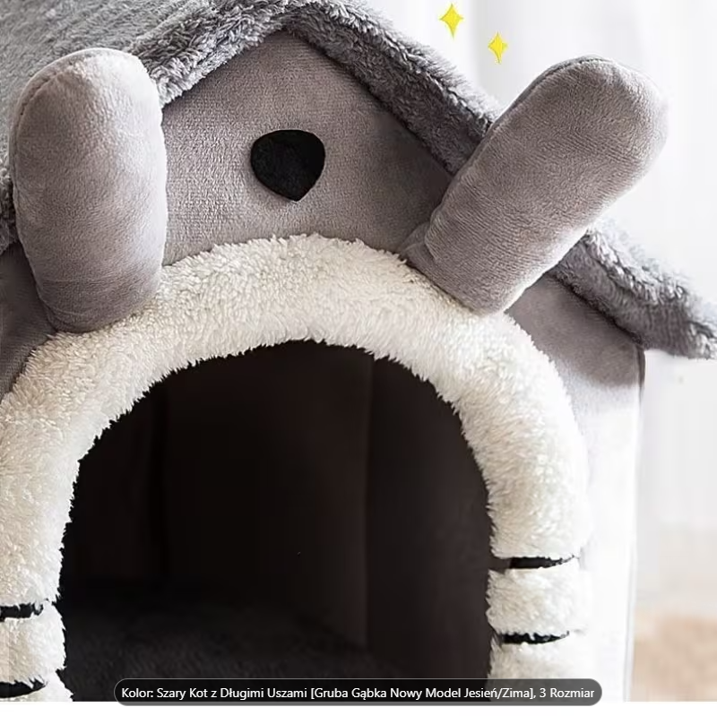 Legowisko dla Kotka lub Pieska łatwe w montażu, ciepły Domek w kształcie budy z zabawnymi uszami.
